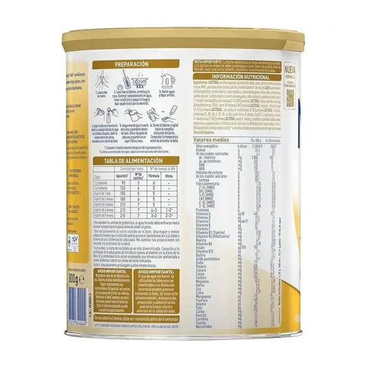 Leite de seguimento concebido para bebés que tenham atingido os seis anos de idade. lA fórmula inclui: