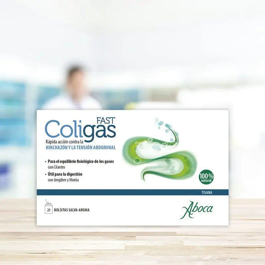 - Aboca Coligast Fast Tisane: Trata-se de uma opção de infusão com uma ação calmante sobre o intestino, para reduzir o inchaço e favorecer naturalmente a eliminação dos gases. Além disso, tomar uma tisana quente após as refeições ajuda a relaxar e a melhorar a digestão.