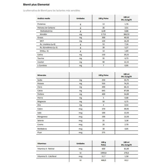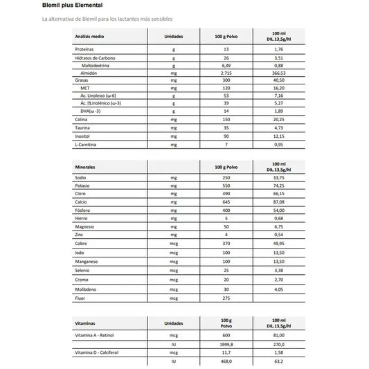 • Blemil Plus Elemental Neutral Flavour +0 Meses 400 gramas