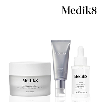 A Medik8 oferece uma gama de produtos com vitamina A, incluindo Crystal Retinal e r-Retinoate, que ajudam a rejuvenescer a pele, tornando-a mais suave e firme. A linha de retinal e retinol da Medik8 inclui: