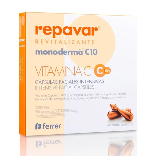 A Repavar oferece uma vasta gama de produtos para o cuidado da pele, que estão classificados em diferentes linhas de produtos: revitalizante, regeneradora, pediátrica, dermosolutions e oilfree. A linha revitalizante desta marca é formulada com base em ingredientes activos naturais, incluindo a vitamina C. Estes produtos foram concebidos para dar energia a uma pele desvitalizada. Os cosméticos desta gama (como as ampolas Repavar) ajudam a pele a recuperar a luminosidade, a eliminar as olheiras e a reduzir o aparecimento de olheiras à volta dos olhos. Trata-se de um creme com propriedades antioxidantes e antirrugas que é utilizado para prevenir e tratar os sinais de fadiga ocular e de envelhecimento: olheiras, bolsas, papos e pés de galinha. Outros cosméticos da linha revitalizante são as ampolas de efeito flash, que têm um efeito lifting, reafirmando a pele em segundos. As ampolas de vitamina C ativa Repavar reduzem as rugas e outros sinais de envelhecimento e fadiga que se reflectem na pele. Actuam contra o foto-envelhecimento e conferem firmeza à pele. O sérum para as linhas de expressão desta linha actua aliviando os músculos faciais, e a sua fórmula contém Isoflavonas de Soja e Argireline.