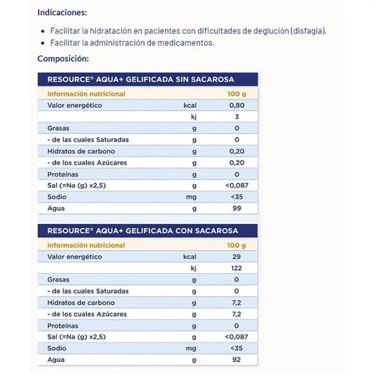 Os primeiros, espessantes derivados do amido, como o Resource® espessante com sabor a laranja, apareceram pela primeira vez há mais de 20 anos e têm a vantagem de serem adoçados e aromatizados para tornar mais agradável o consumo de água espessada. Os últimos, como o Resource® Espesante Clear em formato de dose única, fixam a água entre as partículas de espessante, mantendo a sua viscosidade ao longo do tempo e evitando que a bebida ou líquido engrosse ou dilua em caso de mudanças de temperatura, facilitando a preparação de qualquer tipo de bebida espessada, como água, sumos de fruta, leite, refrigerantes, etc.