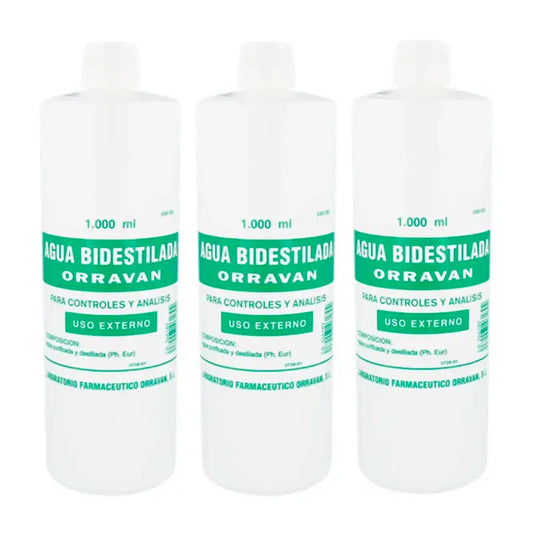 O processo de destilação da água foi obtido por osmose inversa ou também conhecido como ultra-purificação, pelo que não contém sólidos ou bactérias totalmente dissolvidos. Tem um pH de 5,8. O produto contém um boletim de análise. Além disso, cumpre os regulamentos da Farmacopeia Europeia e Americana. É comercializado numa apresentação de 1000 ml.