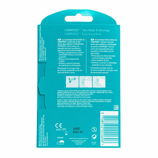 O centro do penso deve estar imediatamente acima do calo e é fixado com a ajuda do adesivo. Este adesivo tem um protector que é removido antes da sua aplicação. A pele deve estar seca para uma boa aderência.