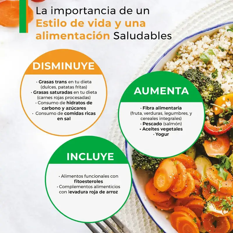 ARMOLIPID PLUS é um suplemento alimentar com 6 ingredientes de origem natural que ajuda a controlar o colesterol e os triglicéridos. Formulado com Levedura Vermelha de Arroz e Policosanóis que ajudam a diminuir a síntese do colesterol; Berberina que melhora a atividade hipolipidémica; Astaxantina e Coenzima Q10 que são potentes antioxidantes que ajudam a combater a oxidação do LDL; e Ácido Fólico que ajuda a controlar os níveis de homocisteína. ArmoLIPID PLUS tem uma fórmula patenteada de tripla ação para manter o colesterol proveniente de: fígado, dieta e tecidos periféricos. Indicado para pessoas com colesterol ligeiro/moderado e para quem as estatinas não estão indicadas. Suplemento alimentar com qualidade, segurança e evidência científica. Número 1 em vendas em Espanha. Sem glúten, sem lactose, sem OGM (sem produtos transgénicos). ArmoLIPID PLUS é produzido de acordo com as boas normas de fabrico, que garantem a qualidade do produto.