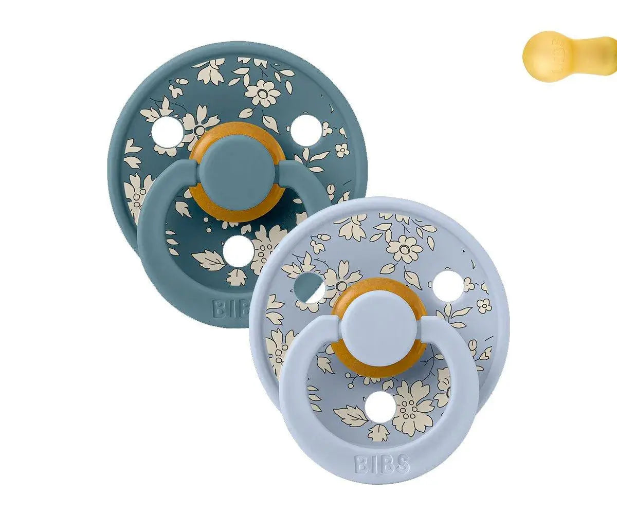 Design exclusivo e original criado e fabricado na Dinamarca pela BIBS. Apresentamos-lhe a coleção exclusiva que a marca traz com a Liberty, inspirada nos seus estampados florais, estas chupetas são feitas de PP, sem BPA, ftalatos e PVC.