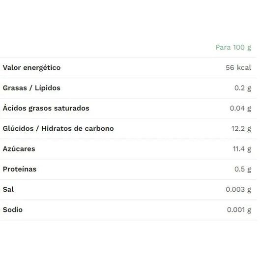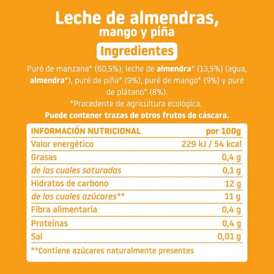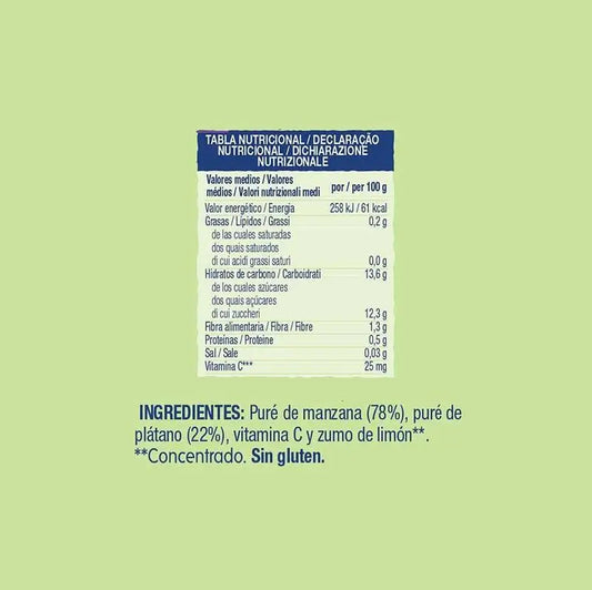 Maçã 55%, alperce 23%, banana 22%. Ingredientes provenientes da agricultura biológica.