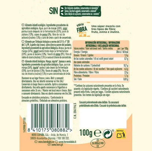 Manter o bebé sob vigilância para evitar que brinque com a tampa. Conservar à temperatura ambiente antes de abrir. Depois de aberto, conservar no frigorífico durante um período máximo de 48 horas.