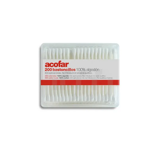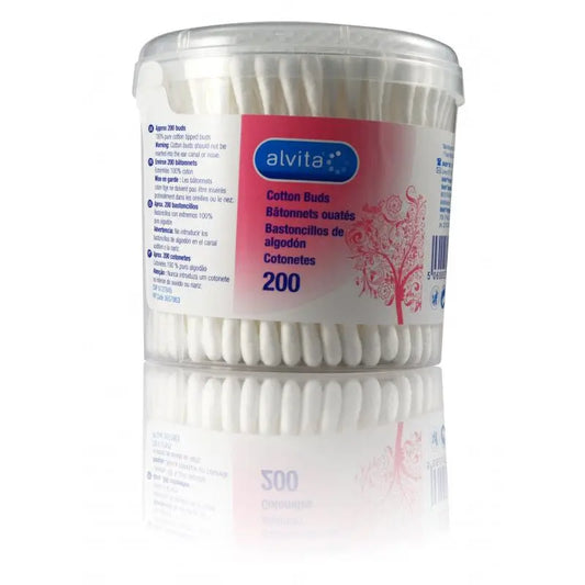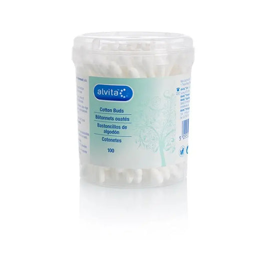 80 cotonetes 100% algodão em cilindro de plástico.