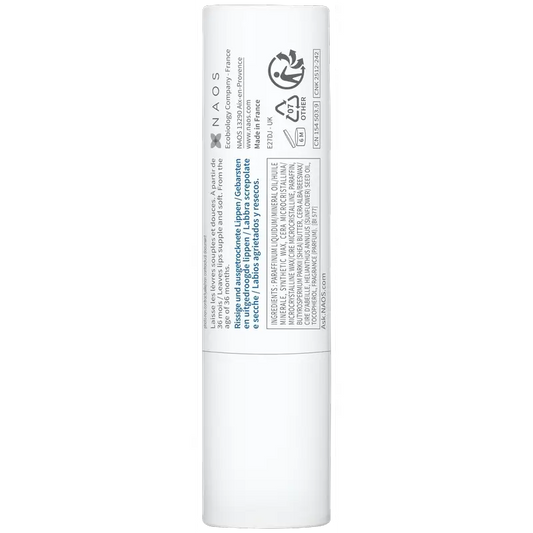 Cera Microcristalina, Octildodecanol, Polideceno Hidrogenado, Ricinus Communis, Palmitato de Cetilo, Miristato de Miristilo, Diisostearato de Poligliceril-3, Pantenol, Metoxicinamato de Etilhexilo, Álcool Cetearílico, Bis-Digliceril Poliaciladipato-2, Estearato de Alquilo C20-40, Cera Carnaúba, Aqua, Butyrospermum Parkii, Simmondsia Chinensis, Acetato de Tocoferilo, Cera Alba, Bisabolol, BHT, Farnesol
