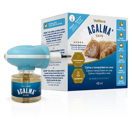 Este aparelho é utilizado em combinação com um difusor elétrico. Ao vaporizar a substância, produzem-se alterações positivas no comportamento. Ajuda a reduzir o miar excessivo, a marcação com urina, a agressividade e os arranhões.