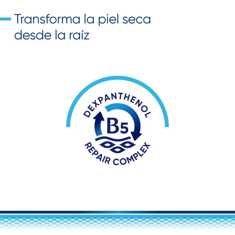 Fórmula enriquecida com o inovador Complexo de Reparação, que actua directamente na raiz da secura para uma mudança profunda e duradoura. Com Dexpantenol, Niacinamida (vitamina B3), lípidos naturais tais como manteiga de karité e óleo de argan, lípidos fisiológicos e glicerina, promove a regeneração da pele a partir do interior.