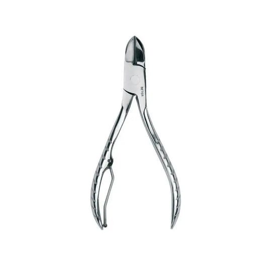 O alicate de manicure Beter com acabamento cromado de língua e ranhura permite a remoção suave das cutículas das unhas. Tem uma afiação individual única que contribui para um resultado óptimo e amigo da pele.