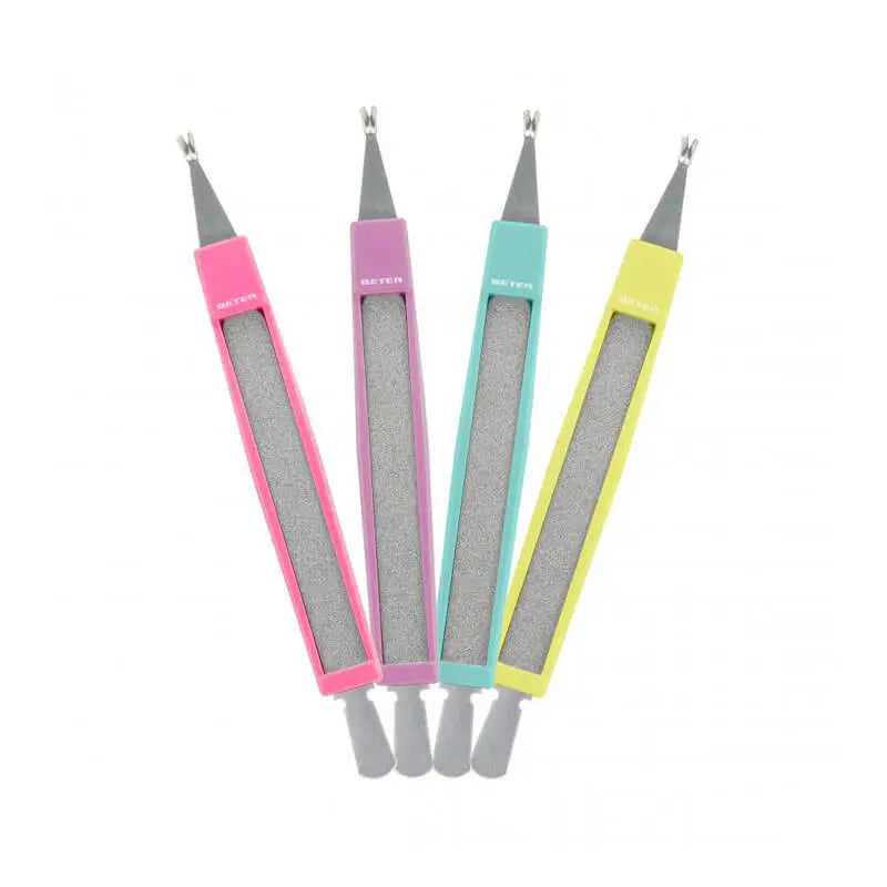 É um instrumento que funciona como um 3 em 1 muito prático. Foi especificamente concebido para cortar cutículas, empurrar e remover vincos e unhas penduradas à volta do prego e limar as unhas de forma eficaz. É também um produto que limpa toda a área à volta das unhas para deixar a pele mais limpa, macia e, acima de tudo, livre de pele danificada e deteriorada. Desta forma, dá às unhas uma aparência muito mais limpa e cuidada.