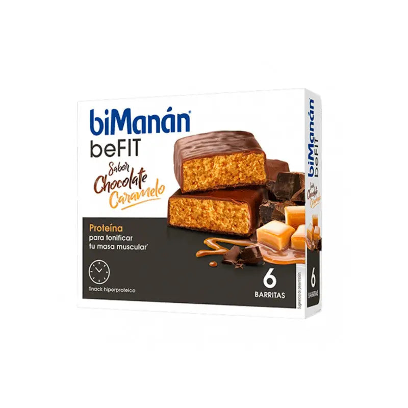 As barras biManán Pro são um alimento de alta proteína com cobertura de chocolate de leite e sabor a caramelo cremoso no seu interior, ideal para incluir numa dieta saudável e equilibrada para promover o crescimento e tonificação muscular.