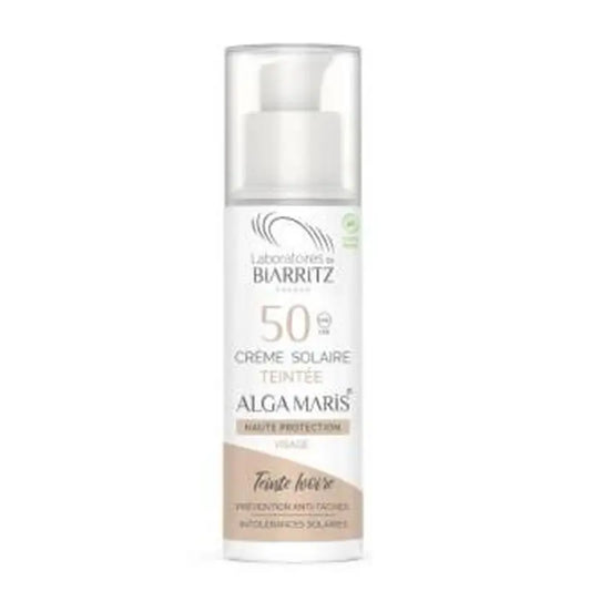 Protector solar com SPF50 para pele mista e oleosa. Com uma pitada de cor para um bom efeito facial.