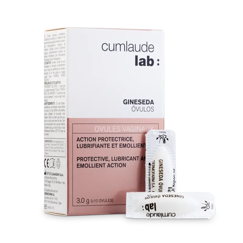 Cumlaude Lab Gineseda Vaginal Ovules é um dispositivo médico para uso intravaginal indicado para ajudar a tratar a secura vaginal em mulheres que estão a experimentar o seu processo climatérico, especificamente as fases pré-menopausa, menopausa ou pós-menopausa, respectivamente. Formato 10 unidades.