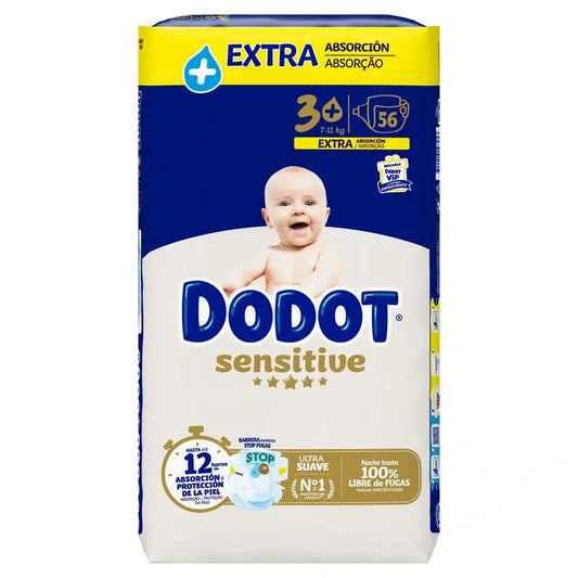 Se o seu bebé exige um sono de conto de fadas: longo, profundo e sem perturbações, conte com Dodot Baby Dry, que garante até 12 horas de secura. Graças ao seu núcleo ultra-absorvente, agora redistribuído para proporcionar mais absorção onde é mais necessário, bloqueia instantaneamente o xixi, mantendo-o afastado da pele do seu bebé para uma boa proteção contra a humidade. Além disso, ajuda a evitar fugas onde elas mais ocorrem com o seu Sistema Triplo Anti-fugas, que se ajusta confortavelmente à volta das pernas, da cintura e do rabo. Dodot Baby Dry possui 1) Flexi-Straps, para um ajuste confortável à volta da cintura, 2) Núcleo Ultra Absorvente, que absorve o xixi instantaneamente e 3) Proteção de Barreira Dupla que ajuda a evitar fugas nos lados. Tal como você, a Dodot coloca a segurança do seu bebé em primeiro lugar: Dodot Dry Baby é dermatologicamente testado, aprovado pela Skin Health Alliance e testado e certificado pela Norma 100 da Oekotex.