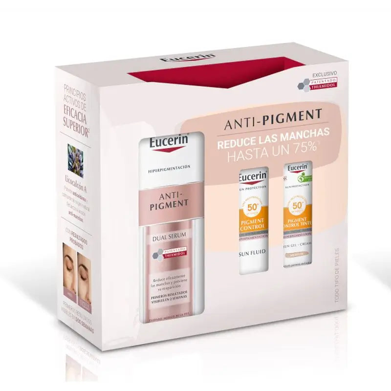 Eucerin Pack Sérum Facial Antipigmentar Duplo Antimanchas 30ml + Mini Sun Fluid Pigment Control SPF 50 + Mini Sun Fluid Pigment Control Tinted SPF 50