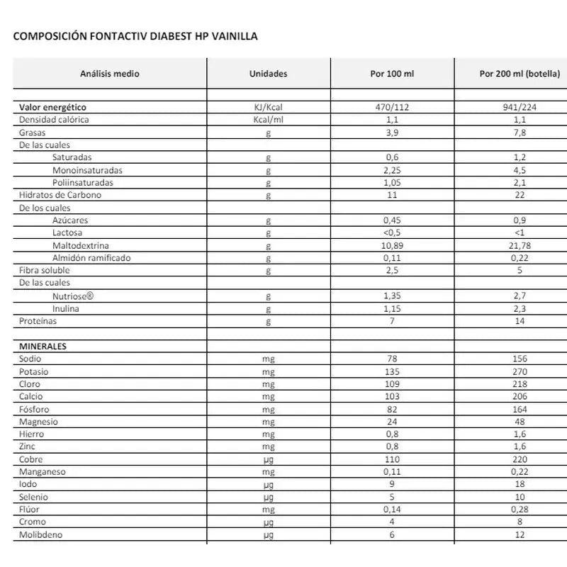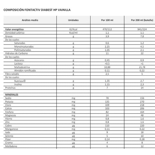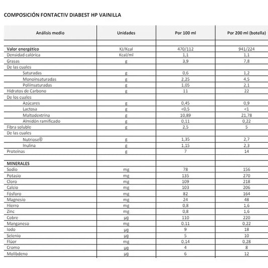 O Fontactiv Diabest Hp é uma bebida com sabor e aroma de baunilha. Os seus ingredientes foram cuidadosamente seleccionados para que possam ser consumidos por pessoas com diabetes ou intolerância à lactose.