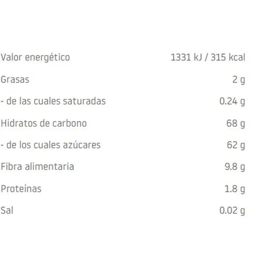 Hidratos de carbono: 15,5 g dos quais açúcares: 9 g
