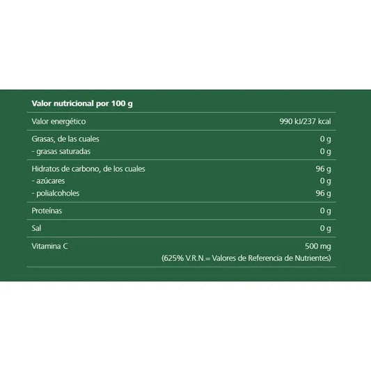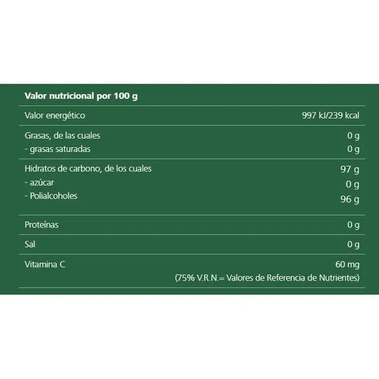 Sabor de eucalipto balsâmico com vitamina C e ervas mediterrâneas, com adoçantes e açúcares.