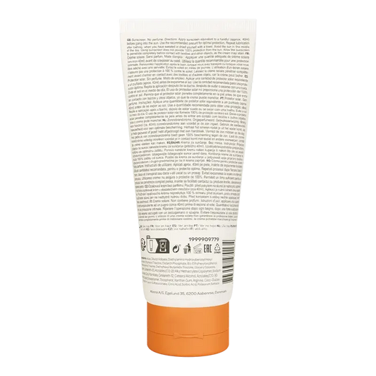 Creme solar para a pele sensível das crianças com elevado SPF50+ de protecção e resistente à água. Não deixa a pele pegajosa e sem marcas brancas.