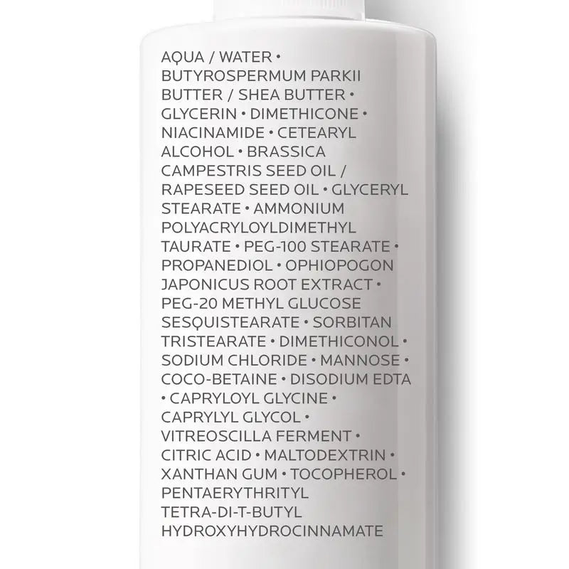 La Roche Posay Lipikar Baume contém: Aqua / Água, Manteiga de Butyrospermum Parkii / Manteiga de Karité, Glicerina, Dimeticona, Niacinamida, Álcool Cetearílico, Óleo de Semente de Brassica Campestris / Óleo de Semente de Colza, Estearato de Glicerilo, Poliacriloildimetil Taurato de Amónio, Estearato de Peg- 100, Propanediol, Extrato de Raiz de Ophiopogon Japonicus, Peg-20 Metil Glucose Sesquistearato, Tristearato de Sorbitano, Dimeticonol, Cloreto de Sódio, Manose, Coco-Betaína, Edta Dissódico, Capriloil Glicina, Caprilil Glicol, Fermento Vitreoscilla, Ácido Cítrico, Maltodextrina, Goma Xantana, Tocoferol, Hidroxidrocinamato de Pentaeritrilo Tetra-Di-T-Butilo.