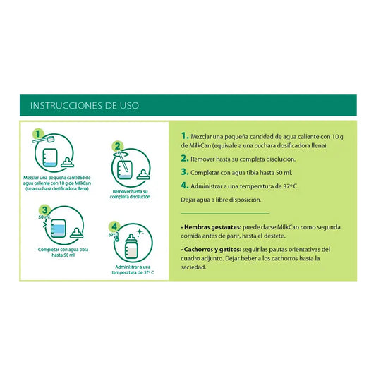 | Leite fórmula homogeneizada em pó solúvel para cachorros e gatos, contendo proteínas, vitaminas e oligoelementos. Revitaliza e garante um bom desenvolvimento desde o primeiro dia. É recomendado para Cadelas e gatas grávidas como suplemento alimentar a partir do décimo dia antes do parto, até o desmame. |