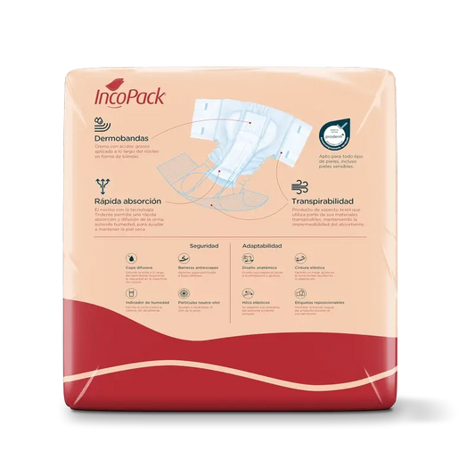 Almofadas de incontinência: dispositivos de uso único que se ajustam perfeitamente ao corpo para absorver e segurar a urina no interior.