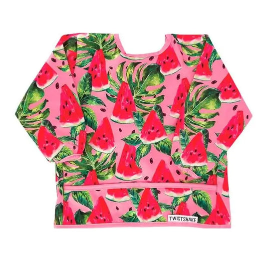 O babete de manga comprida é uma boa escolha para o início do desmame, quando o bebé está pronto para comer por si próprio.