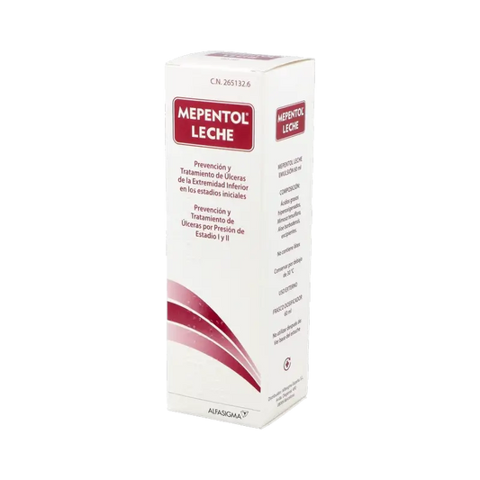 Mepentol Emulsão Láctea para Úlceras loção para prevenir e tratar as úlceras nas suas fases iniciais que aparecem devido à pressão sobre a pele dos membros inferiores, como as venosas, arteriais e do pé diabético. Também hidrata e nutre em profundidade.