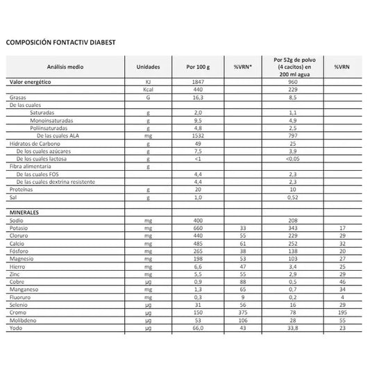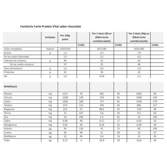 O batido em envelopes com sabor a chocolate e fibras contém cálcio e vitamina D , que contribuem para a manutenção dos ossos. Vitamina B2, B6, B12, Magnésio e Ferro para reduzir o cansaço e a fadiga. Vitamina C e Zinco para um normal funcionamento do sistema imunitário.