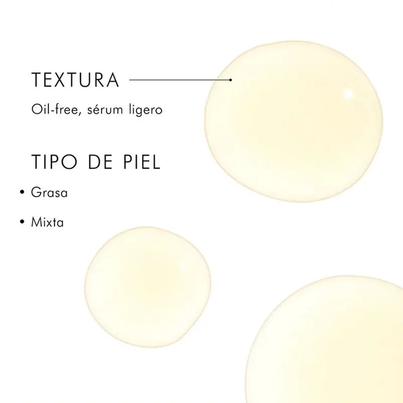 Soro antioxidante com vitamina C, silimarina e ácido ferúlico, proporcionando protecção ambiental para pele oleosa e com tendência a manchas que reduz o excesso de óleo, melhora a textura da pele e melhora visivelmente os sinais de envelhecimento.