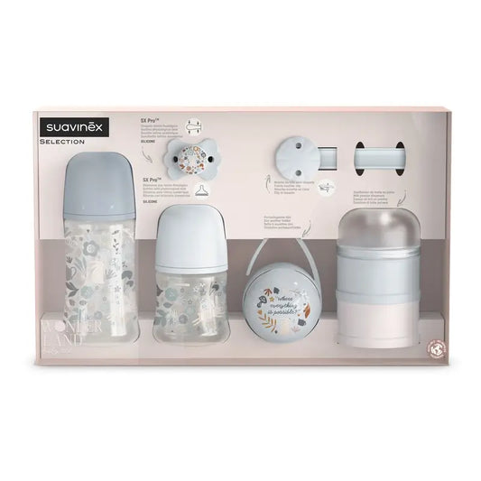 Conjunto de biberões Zero Zero com recargas, especial para recém-nascidos e bebés em amamentação. Inclui um biberão anti-cólicas Zero Zero Zero 180 ml de fluxo adaptável + tetina de substituição de fluxo adaptável + saco anti-cólicas de substituição. O conjunto inclui: Um biberão anti-cólicas Suavinex Zero Zero completo, com capacidade de 180 ml e tetina de fluxo adaptável. Uma tetina de substituição de fluxo adaptável. A tetina de fluxo adaptável deixa passar mais ou menos líquido em função da força com que o bebé suga, tal como acontece com o peito da mãe. É por isso que foi especialmente concebida para os bebés que amamentam. Um saco anti-cólicas de silicone de substituição. O biberão anti-cólicas Zero Zero reproduz fisiologicamente as glândulas mamárias durante a sucção. Imita física e funcionalmente o peito da mãe. A sua bolsa anti-cólica funciona da mesma forma que as glândulas mamárias: