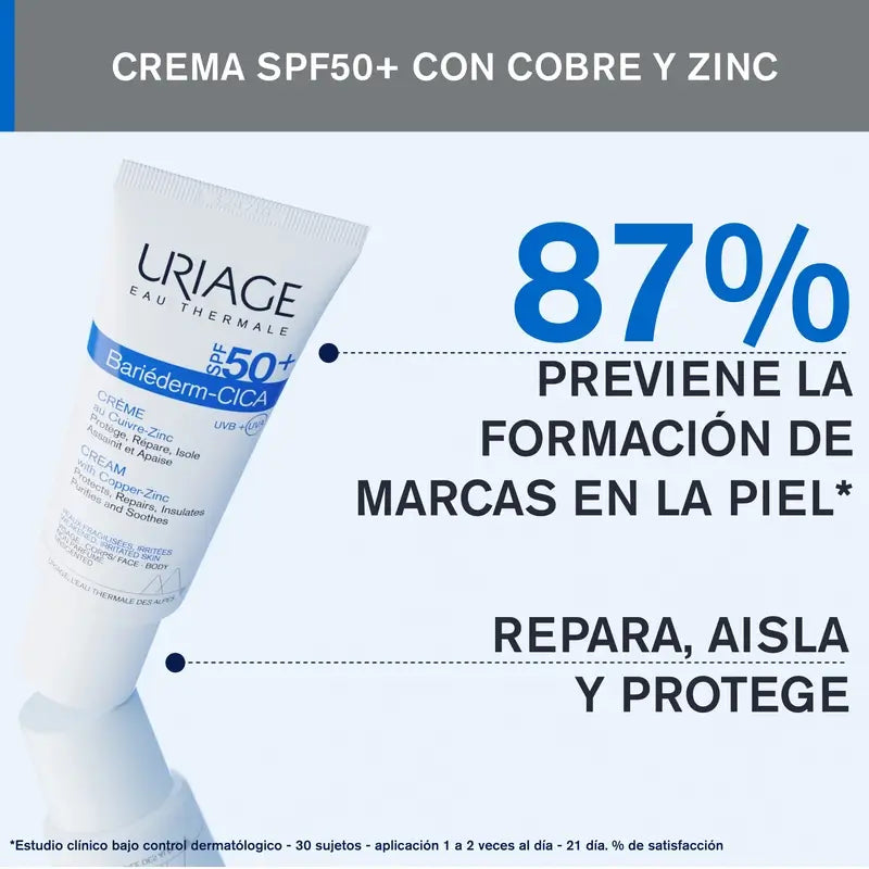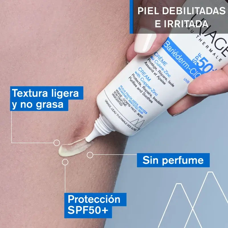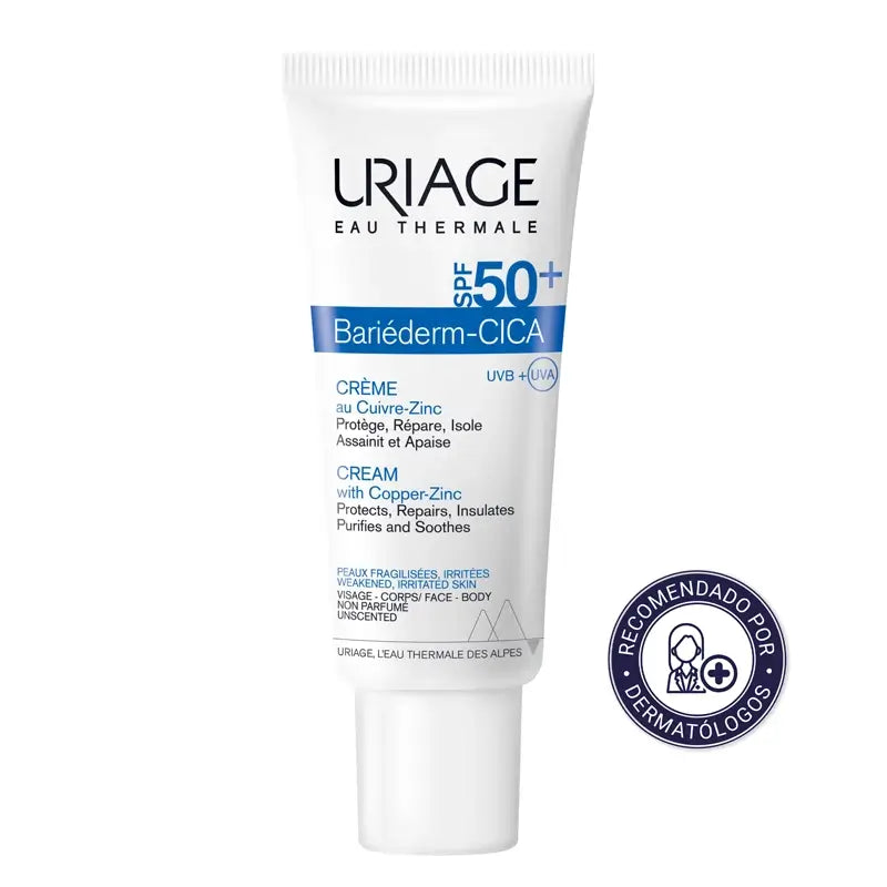 Aplicar Uriage Bariéderm CICA Creme SPF50+ 1 a 2 vezes por dia sobre a pele limpa após a limpeza com Bariéderm Cica Cleansing Gel. Em caso de exposição solar, reaplicar a cada 2 horas e após o banho. Evitar o contacto com os olhos.