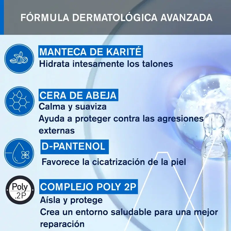 Contém manteiga de carité e manteiga de abacate, que são ingredientes naturais que promovem a hidratação de zonas secas e proporcionam uma sensação imediata de bem-estar. Quando aplicado em áreas específicas que fazem comichão, apertado, apertado, comichão ou vermelho, o seu efeito calmante pode ser sentido imediatamente. A sua aplicação constante estimula a reparação adequada da derme durante várias horas devido ao seu efeito residual.