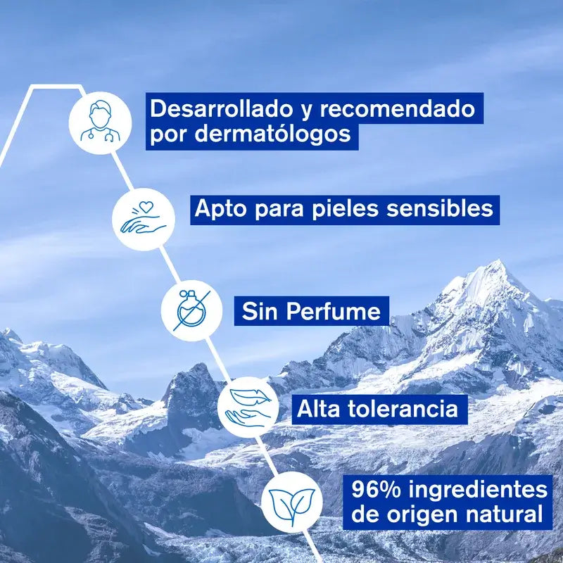 Além disso, foi enriquecido com centella asiatica, ácido hialurónico de alto e baixo peso molecular e vitamina B5. Estes promovem a regeneração das células da pele e aumentam a luminosidade do rosto. Também com cobre-zinco, que dá à pele o seu conforto ideal; e pantenol, que melhora os sintomas de irritação, tais como secura e vermelhidão. Ao hidratar em profundidade, a pele é aplainada e ajuda a suavizar e reduzir as linhas finas.