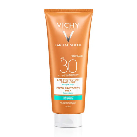 Toda a gama de produtos de proteção solar da Vichy foi concebida pela sua ampla gama de benefícios: hidratação intensa, acabamento invisível, pele sublime e bronzeado ideal. Sem perfume e sem parabenos, fórmula hipoalergénica enriquecida com Água Termal de Vichy calmante, fortificante e regeneradora.